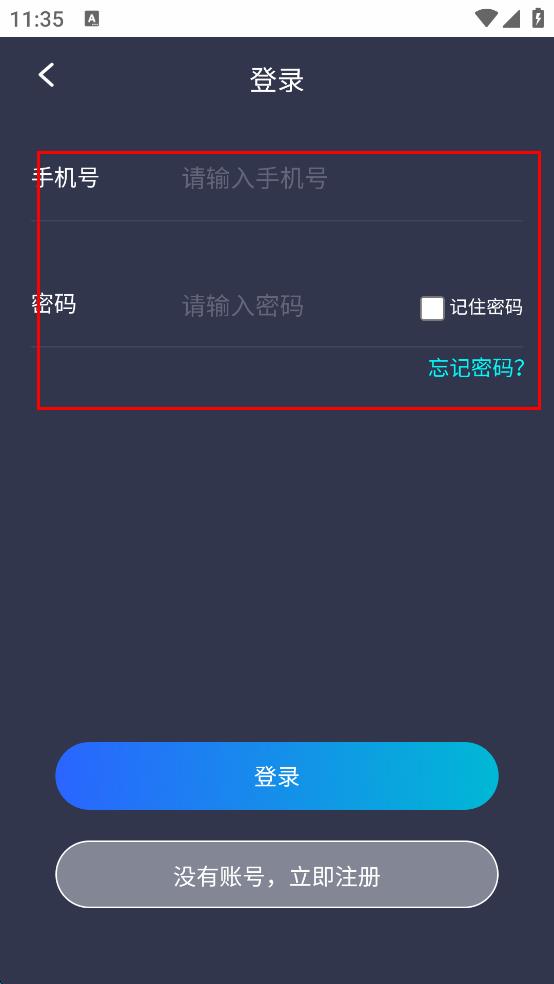 4、在賬號登錄信息填寫頁面,輸入正確的手機(jī)號碼和密碼后,點(diǎn)擊“登錄”按鈕,完成登錄操作。
