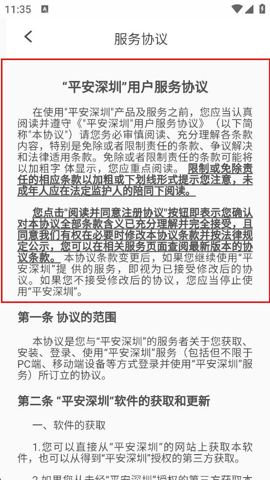 2、在登錄頁面,詳細(xì)的閱讀系統(tǒng)的用戶服務(wù)協(xié)議,閱讀結(jié)束后進(jìn)入下一步進(jìn)入到登錄選擇頁面。