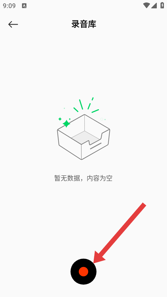 2、在錄音庫(kù)頁面,點(diǎn)擊底部帶有紅色圓點(diǎn)的圓形錄制按鈕,開始錄制。