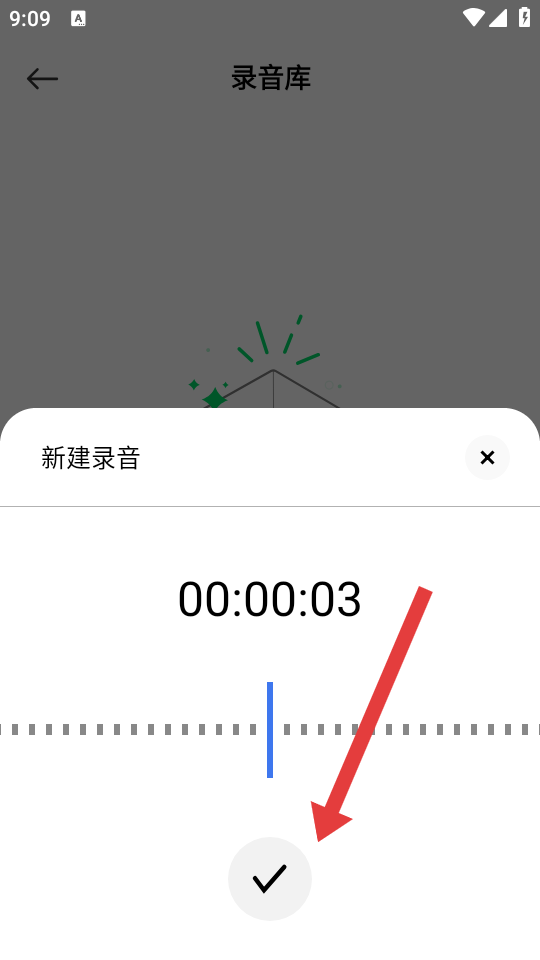 3、錄音結(jié)束后,點(diǎn)擊新建錄音界面中的對(duì)勾按鈕,確認(rèn)完成本次錄音。