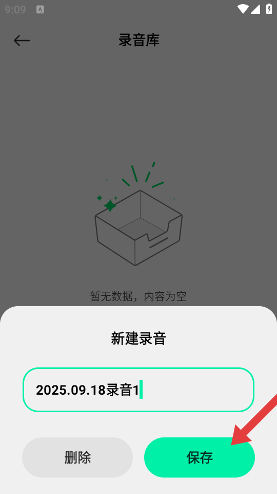 4、在彈出的錄音命名界面里,確認(rèn)名稱后點(diǎn)擊保存按鈕,完成錄制與保存。