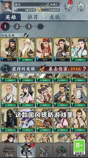 2.上百個(gè)武俠角色等待玩家選擇。不同的武術(shù)角色有不同的特點(diǎn)和技巧