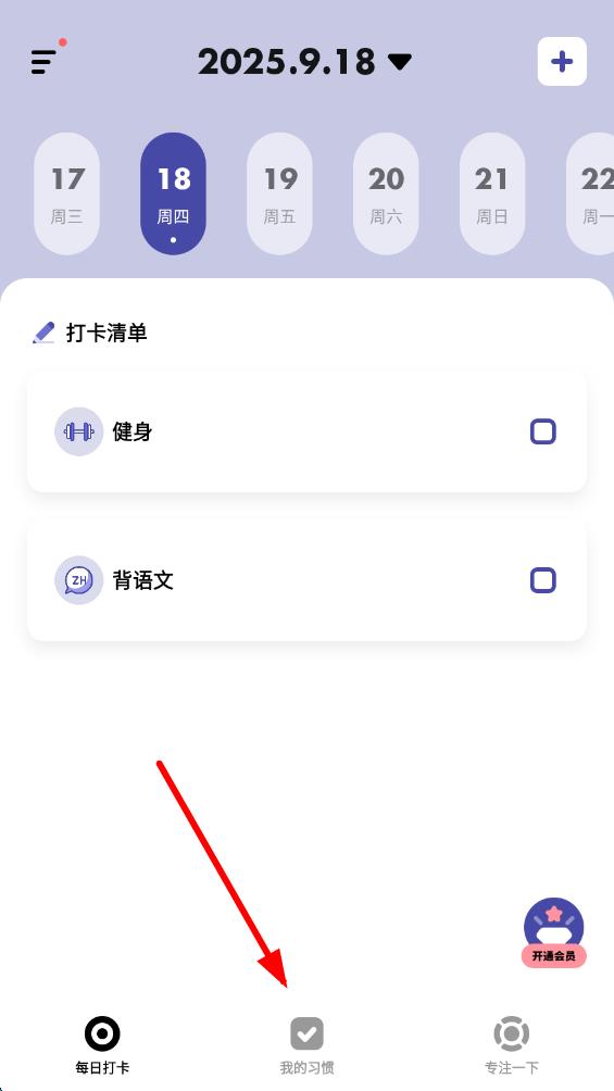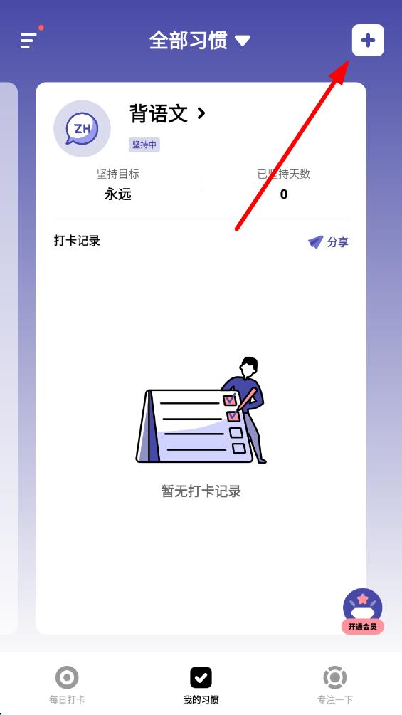 2、在習(xí)慣管理界面中,點(diǎn)擊右上角的添加按鈕,進(jìn)入添加打卡習(xí)慣頁面。