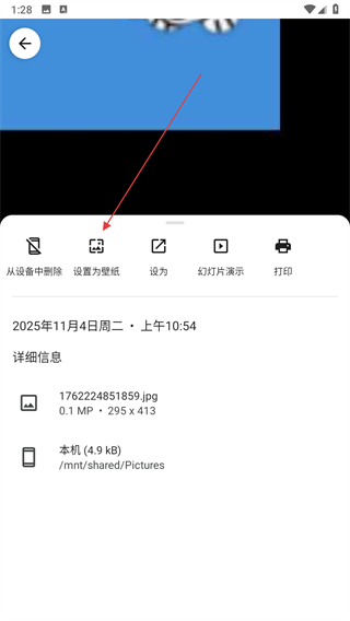 3、在彈出的菜單中,點(diǎn)擊設(shè)置為壁紙選項(xiàng)。