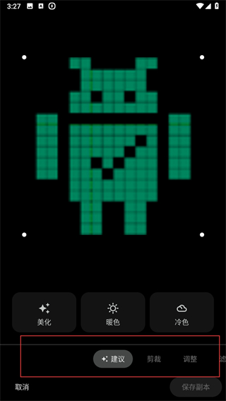 3、在編輯界面中,可選擇建議裁剪調(diào)整等編輯功能。