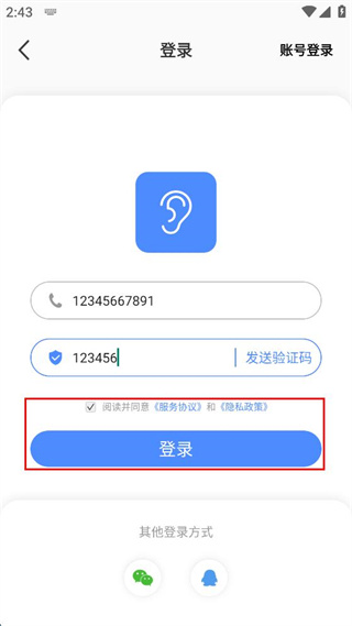 4、勾選閱讀并同意服務協(xié)議和隱私政策,點擊登錄按鈕完成登錄操作。