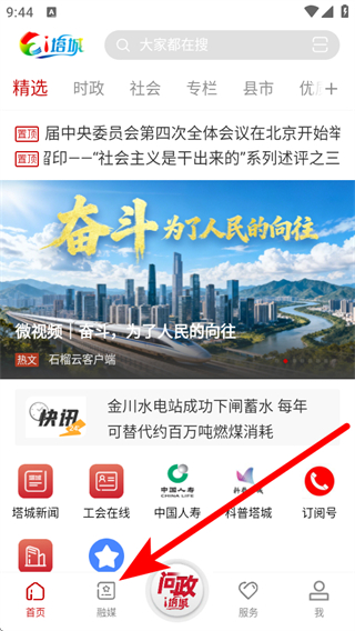 1、在i塔城的首頁(yè),點(diǎn)擊底部融媒的按鍵,進(jìn)入融媒的頁(yè)面。