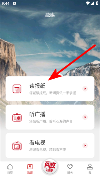 2、在融媒的頁(yè)面,可以點(diǎn)擊讀報(bào)紙,進(jìn)入讀報(bào)紙的界面。
