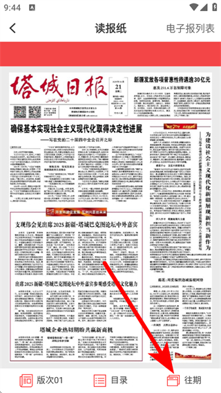 3、在界面可直接查看當(dāng)期塔城日?qǐng)?bào),若需查看歷史報(bào)紙,點(diǎn)擊往期。
