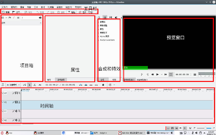 包括屬性窗口和素材屬性窗口,分別顯示特效等的屬性和素材的屬性。