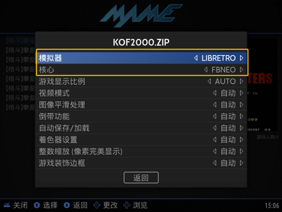 4.因部分游戲roms原因,將下圖游戲列表中特殊標注的游戲,對每個游戲分別修改至相應模擬器核心。
