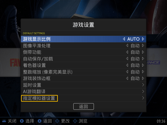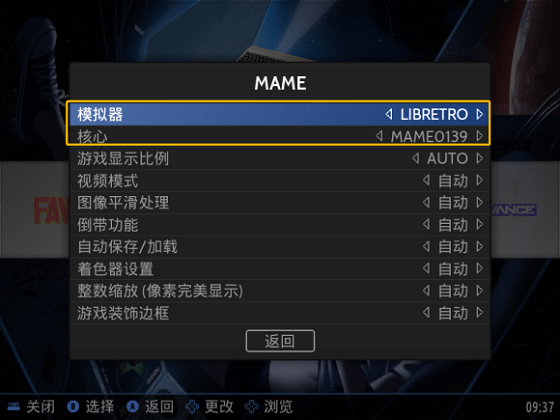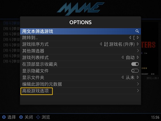 方法:選中這個游戲,按【選項】按鈕,選擇高級游戲選項,修改模擬器核心。(見下圖)