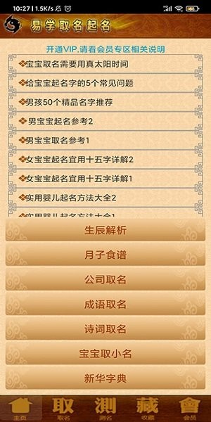 5、成語(yǔ)取名,能夠通過(guò)成語(yǔ)知識(shí)進(jìn)行取名的操作,輕松篩選;