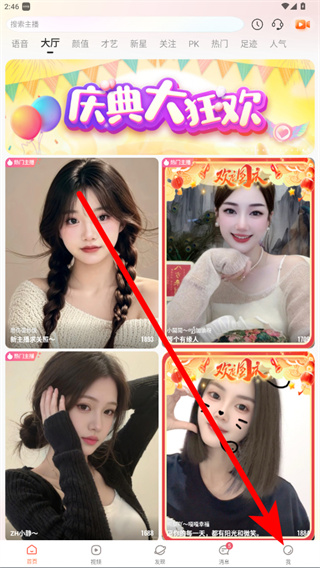 1、打開紅人直播APP,點擊底部導(dǎo)航欄中的我的進入個人頁面。