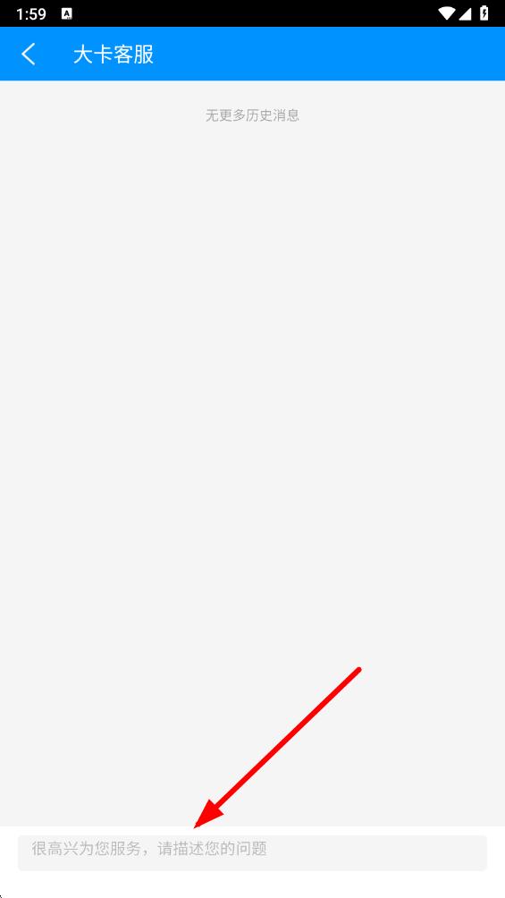 4、進入大卡客服聊天窗口,在輸入框中輸入您遇到的問題,然后發(fā)送消息,即可與客服進行溝通咨詢。