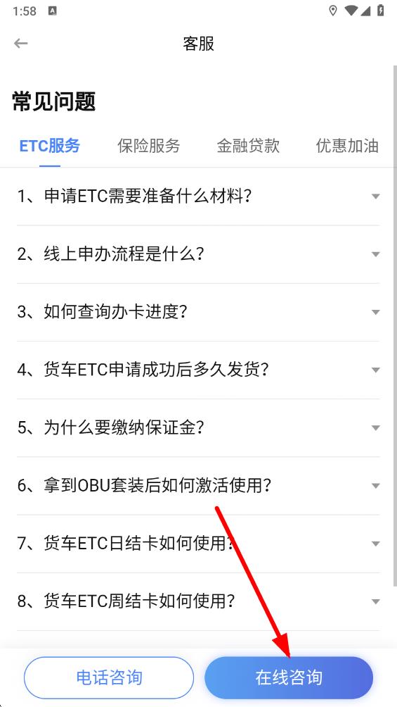 3、進入客服界面后,可以通過電話咨詢客服,也可以點擊下方的在線咨詢按鈕。