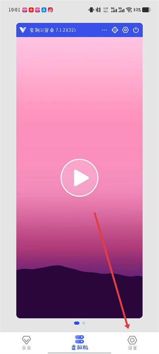 1、打開光速虛擬機(jī),在主界面點(diǎn)擊右下角設(shè)置選項(xiàng),進(jìn)入設(shè)置。