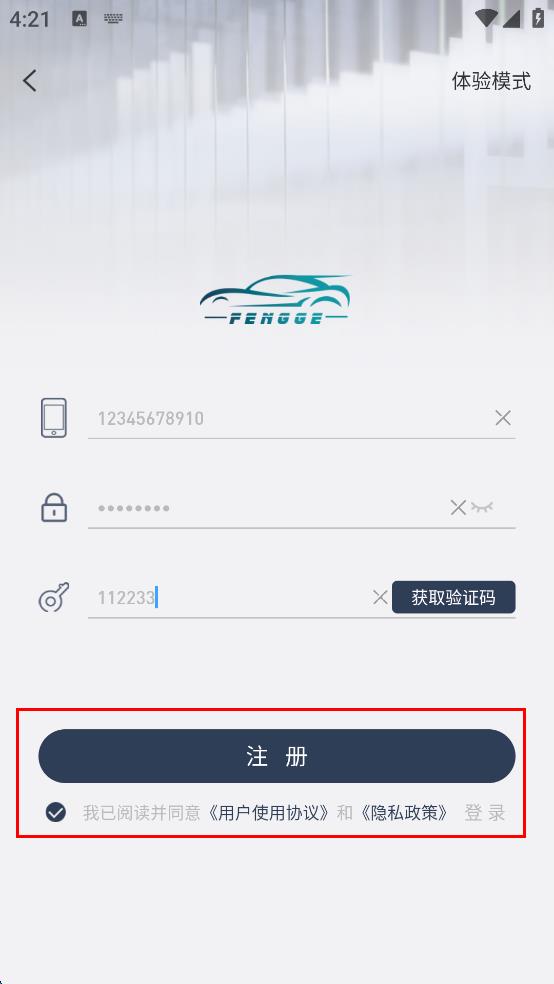 4、勾選我已閱讀并同意用戶使用協(xié)議和隱私政策,然后點擊“注冊”按鈕,完成注冊操作。