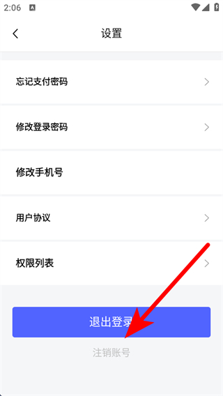3、在設(shè)置頁面中,點(diǎn)擊注銷賬號(hào)選項(xiàng),進(jìn)入商戶注銷頁面。