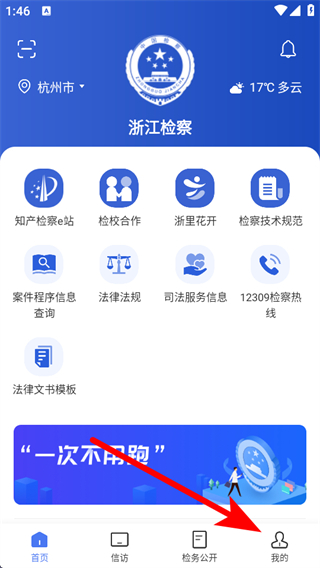 1、打開浙江檢察APP,點擊右下角我的,進入個人的頁面。