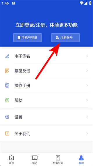 2、在個人的頁面中,點擊注冊賬號,進入注冊的頁面。