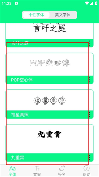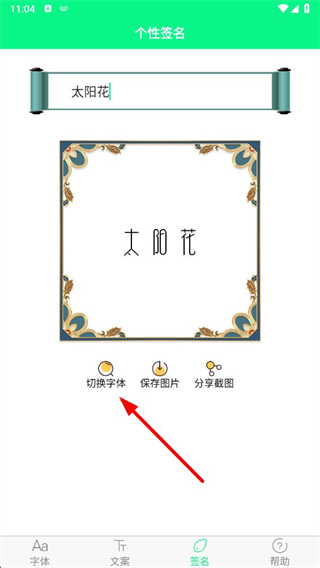 3、點(diǎn)擊切換字體,可選擇不同的字體樣式來呈現(xiàn)簽名。