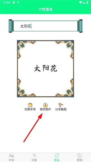 4、字體選擇完成后,點(diǎn)擊保存圖片,即可將制作好的個(gè)性簽名保存到本地。