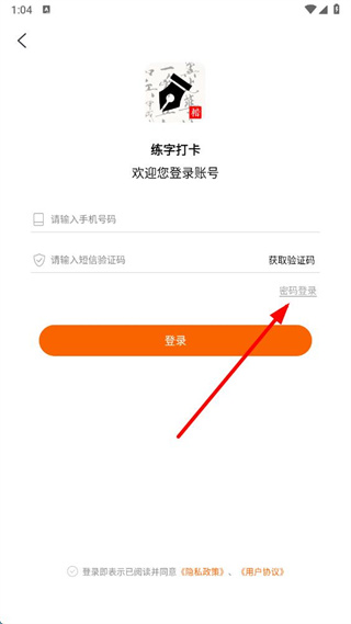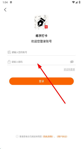 4、在密碼登錄頁面,輸入賬號(hào)和密碼,點(diǎn)擊登錄即可完成練字打卡app的密碼登錄操作。