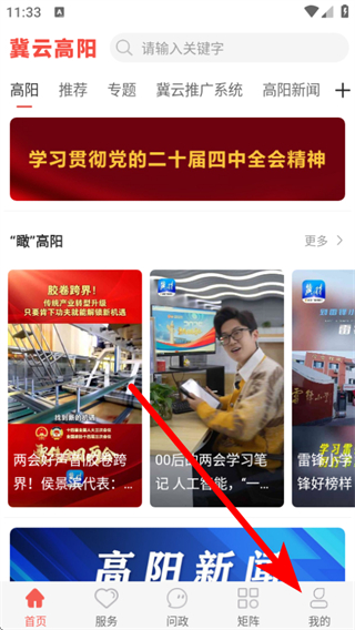 1、打開冀云高陽APP,點擊底部導(dǎo)航欄的我的,進入個人頁面。
