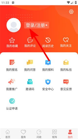 2、在個人頁面中,點擊登錄/注冊的區(qū)域,進入賬號密碼登錄界面。