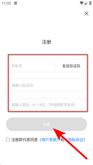 4、在注冊頁面,輸入信息后,點擊注冊按鈕,即可完成賬號和密碼的注冊。