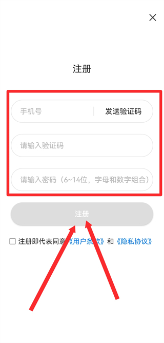 4、在注冊(cè)的頁面,輸入手機(jī)號(hào)等信息后,點(diǎn)擊注冊(cè),完成注冊(cè)登錄。