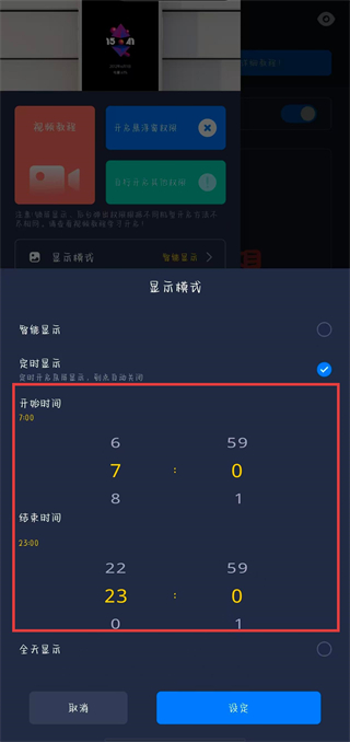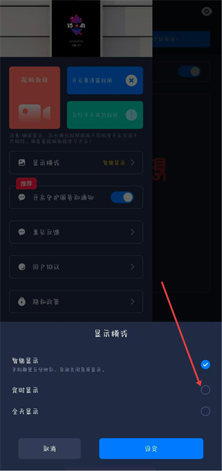 3、進(jìn)入顯示模式頁(yè)面后,選擇定時(shí)顯示選項(xiàng)。