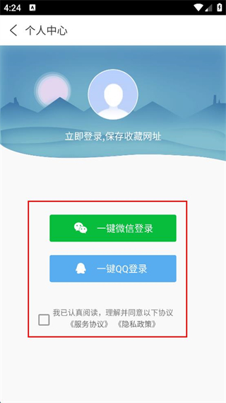 2、選擇一鍵微信登錄或一鍵QQ登錄方式,勾選同意服務(wù)協(xié)議和隱私政策。
