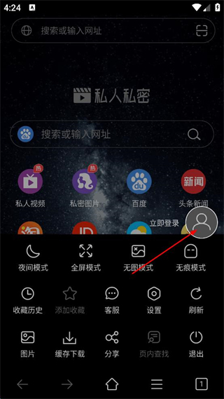 2、私密瀏覽,可以進(jìn)入隱身模式瀏覽網(wǎng)頁,很安全,不怕自己的隱私泄露