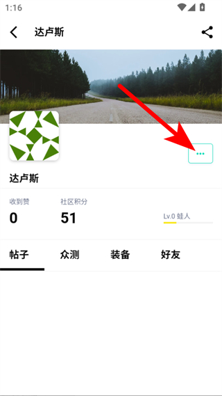 3、在個人主頁中,點(diǎn)擊昵稱旁邊的三個點(diǎn)按鈕,展開功能菜單。