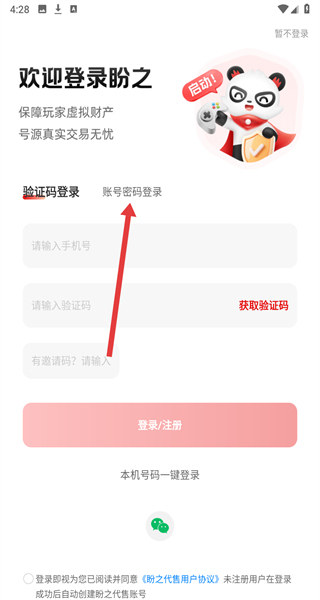 3、在登錄界面點(diǎn)擊“賬號密碼登錄”,切換到賬號密碼登錄界面。