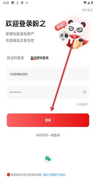 4、在賬號密碼登錄界面輸入賬號和密碼,勾選同意用戶協(xié)議后點(diǎn)擊“登錄”,完成賬號登錄操作。