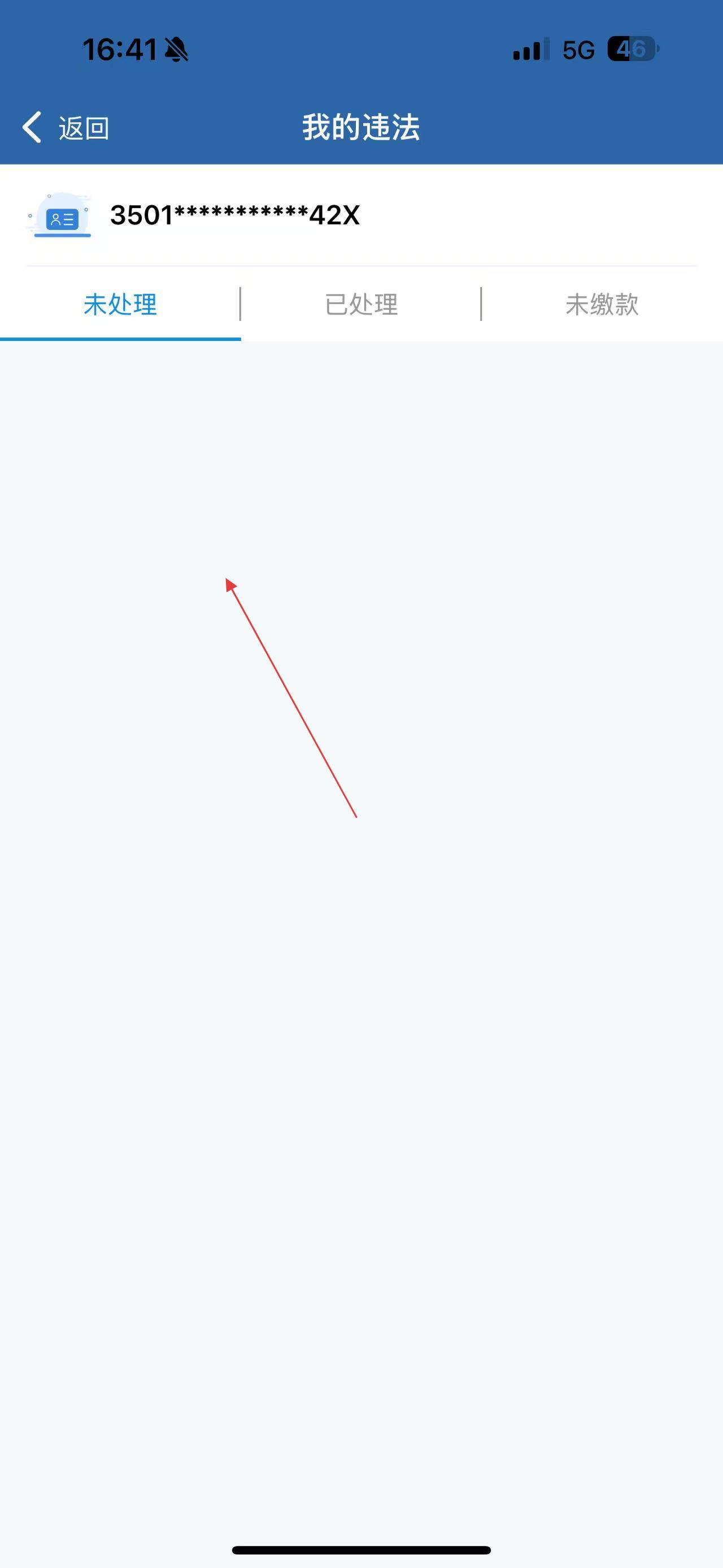 3、查詢到違法記錄后,在我的違法列表中,點(diǎn)擊未處理選項(xiàng)卡下的具體違法條目,按后續(xù)提示完成違法處理流程。