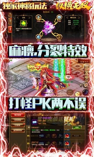 《縱橫無(wú)雙-免費(fèi)充值版》是一款主打單職業(yè)特色的BT傳奇手游,游戲福利超高;全新打金地圖,小怪元寶爆一地,BOSS狂暴鉆石,充值卡,每日千萬(wàn)鉆石等你來(lái)?yè)?頂級(jí)裝備BOSS全可爆,千元真充值卡簽到就送,包你不花錢(qián),花小錢(qián)也能玩得爽;切割神器免費(fèi)解鎖,BOSS刀刀到肉;獨(dú)家神將麻痹、分裂特技,神戒破甲,暈眩效果,神兵強(qiáng)力道法技能等你來(lái)探索;這是一個(gè)值得你嘗試的船新版本