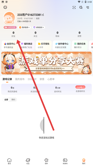 2、在個(gè)人賬號(hào)頁(yè)面,點(diǎn)擊好友選項(xiàng),進(jìn)入好友管理界面,準(zhǔn)備查看或管理游戲好友關(guān)系。