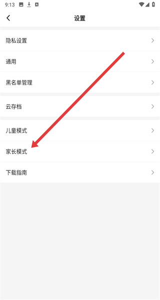 3、在進(jìn)入到設(shè)置頁(yè)面中,可以點(diǎn)擊家長(zhǎng)模式選項(xiàng),進(jìn)入設(shè)置。