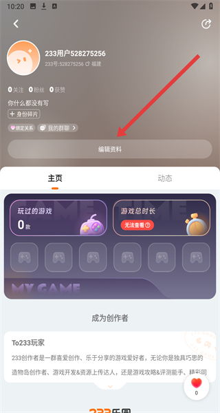 2、在進(jìn)入到我的主頁(yè)后,可通過(guò)點(diǎn)擊編輯資料按鈕,進(jìn)入查看可修改的資料信息。