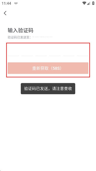 2、在輸入驗(yàn)證碼界面輸入收到的驗(yàn)證碼,完成APP登錄操作。