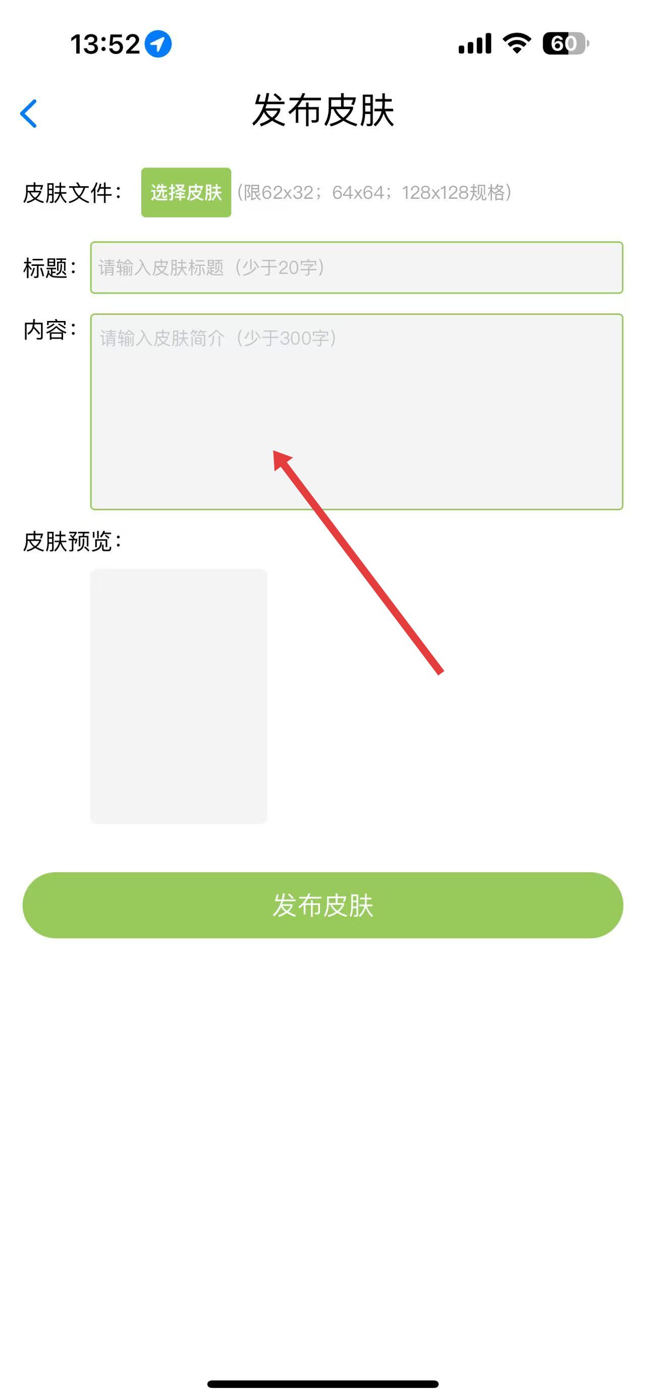 4、在發(fā)布皮膚界面中,選擇皮膚文件,輸入標(biāo)題和簡(jiǎn)介后點(diǎn)擊發(fā)布。