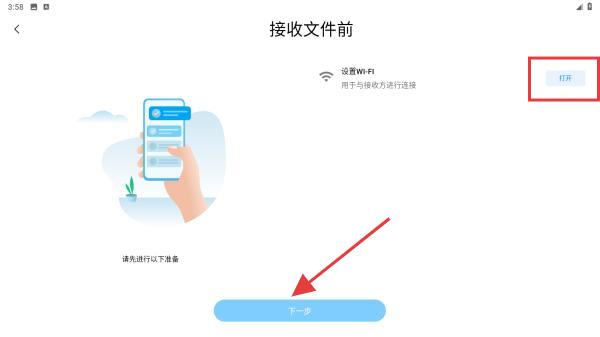 1、打開小米快傳系統(tǒng)功能,點擊界面中的接收按鈕即可跳轉該頁面。