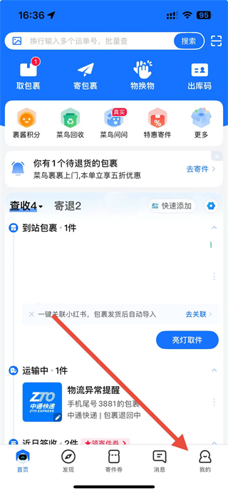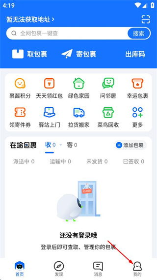 1、打開菜鳥裹裹app,點擊底部導(dǎo)航欄中的我的選項。