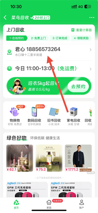 2、在菜鳥回收頁面確認(rèn)上門回收的地址。