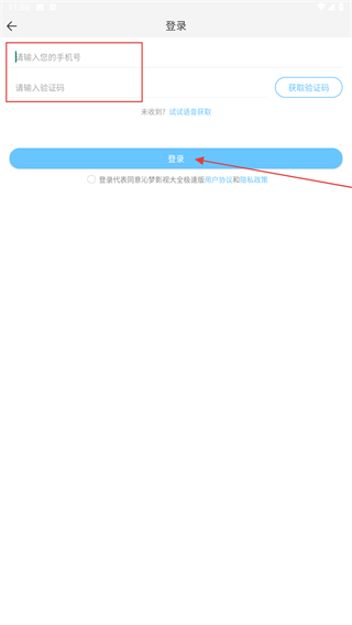 3、輸入手機號、驗證碼后,再點擊登錄即可完成。