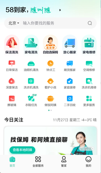 【服務多樣】保潔保姆、清洗維修、搬家換鎖,用58到家全搞定;